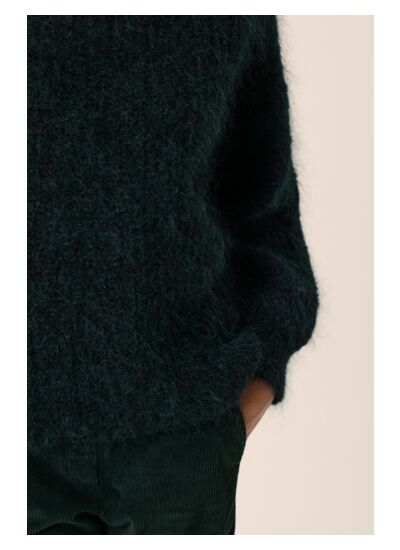 • Pull en maille réalisé en fil italien du groupe "Moelleux" en Kid Mohair et laine mérinos certifiée sans Mulesing. Fil gonflant, chaud, très doux et duveteux.