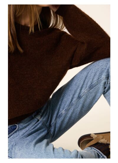 • Pull réalisé en fil italien premium du groupe "Light" en Super Kid Mohair d'Afrique du Sud certifié RMS et Baby Alpaga du Pérou, donnant un aspect gonflant et garantissant légèreté et douceur. Fil emblématique Des Petits Hauts.