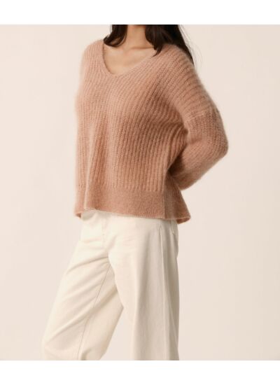 Petit basique chic facile à coordonner à une jupe ou un pantalon, le pull col V Charlie opte pour une palette de coloris naturels très en vogue cette saison. En kid mohair doux et cosy, sa maille côtelée et son encolure mettront en valeur votre silhouette.