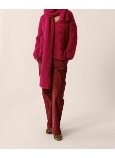 • Pull réalisé dans un nouveau fil italien du groupe "Fluffy" en kid mohair d'Afrique du Sud et laine mérinos extrafine d'Australie certifié RMS & RWS. Fil au toucher très doux, gonflant et duveteux.