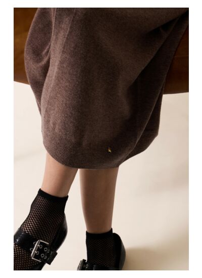 La robe pull Ariette, c'est la robe longue en laine mérinos dans laquelle vous aimerez vous glisser tout l'hiver. Manches longues, encolure V pour un décolleté mis en valeur et légérement large, son boutonnage façon cardigan apporte un supplément de style à cette robe minimaliste.