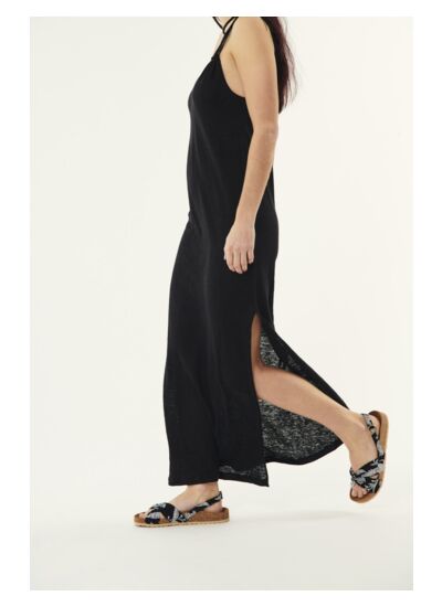 Sur le front de mer ou en ville, la petite robe en lin sera de toutes les sorties. Douce et légère, à porter ceinturée ou coupe droite, ses fines bretelles et son encolure V mettront en valeur votre décolleté.