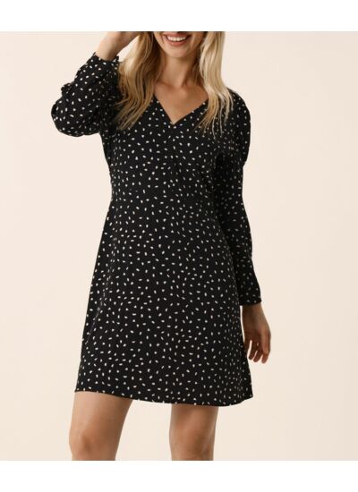 Icône du vestiaire revue et stylisée, la petite robe noire flirte avec un motif graphique pour l'automne. Manches longues, joliment décolletée et froncée en tête de manches pour créer volume et bouffant, Sandy sera une alliée de taille pour vos looks de jour et du soir.