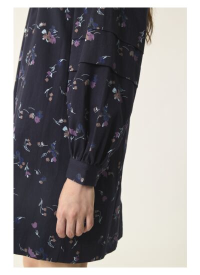 Tombé fluide et look folk pour la robe courte Suzon. Pièce élégante aux détails travaillés modernisée de manches bouffantes à plis décoratifs, vous allez adorer la porter cette saison.