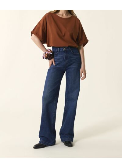 Esprit boxy avec sa coupe surdimensionnée et ses manches à revers, le t-shirt oversize Haricia sort son épingle du jeu. En coton très doux teint en pièce pour un effet vintage très en vogue cette saison, portez-le en total look oversize avec un pantalon large ou avec une jupe en jean.