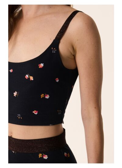 Quintessence du style année 90, la brassière Jiji exprime toute sa personnalité avec son motif floral foisonnant et ses bretelles scintillantes. Portée sous un blazer avec le legging coordonné pour un total look ou un jean pour calmer le jeu, difficile d'y résister.