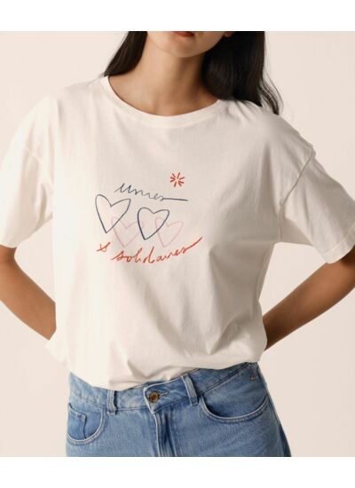 À l’occasion d’Octobre Rose, Des Petits Hauts se mobilise pour la recherche contre le cancer du sein et pour soutenir les femmes qui combattent la maladie. Le t-shirt manches courtes Marina est imprimé d'un message universel plein d'optimisme. La totalité des bénéfices des ventes de ce t-shirt sera reversée à l'institut Curie.