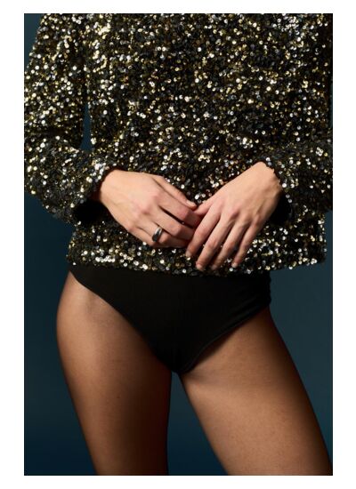 Coupe structurée et brillance miroir pour ce top femme. Imaginé comme un bijoux audacieux à porter avec une jupe en velours pour les fêtes, vous ne résisterez pas à ce modèle à l'esthétique moderne.