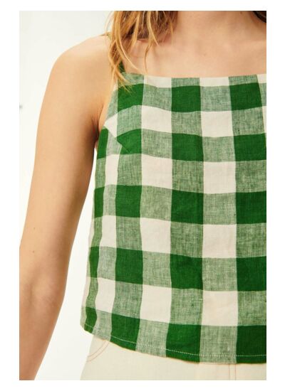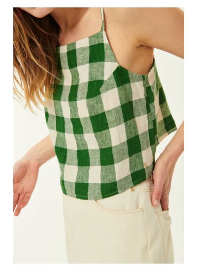 • Crop top en vichy réalisé en lin, fibre naturelle durable et respirante, elle diminue la sensation de chaleur en été.