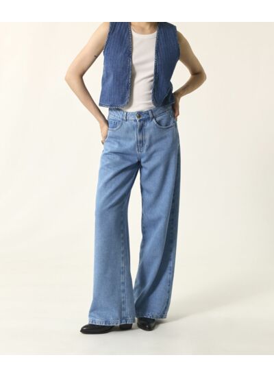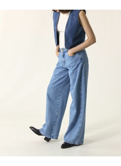 La veste en jean tombe les manches et devient plus incontournable que jamais cette saison. Esprit gilet de tailleur revisité dans un esprit folk avec son denim rayé, ses biais contrastés et son léger matelassage, on porte Loucy en superposition sur un t-shirt imprimé ou une blouse.
