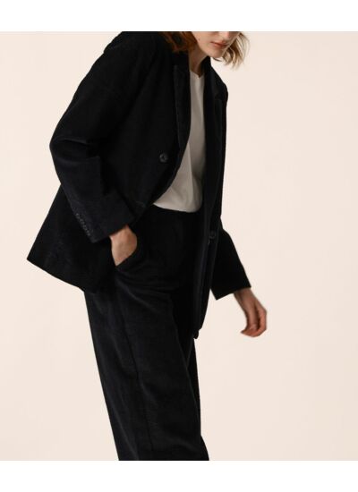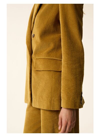 Icône du vestiaire portée de jour comme le soir, la veste de tailleur Sianette s'inspire du blazer croisé masculin pour l'automne. Revue et stylisée dans un velours côtélé très tendance cette saison, épaulettes, double boutonnage et poches à rabat façonnent cette pièce résolument mode.