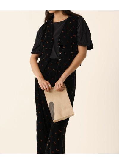 L'automne signe le grand retour du gilet de tailleur sans manches et avec lui l'arrivée du velours. Encolure V et boutonné, à porter ouvert ou fermé, Timon apportera une autre dimension à vos looks cette saison.