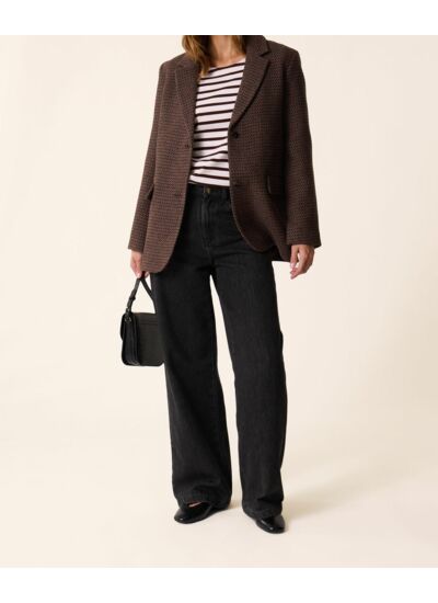 Le vestiaire féminin s'étoffe de pièces empruntées au dressing masculin avec cette veste de tailleur Venise. Coupe droite structurée d'épaulettes pour un look feminisé, vous aimerez porter ce blazer en guise de veste de mi-saison avec un pantalon flare et des bottines.