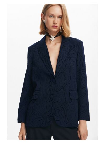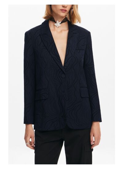 Blazer avec col en V, fermeture à bouton unique, broderies de fleurs intégrées. Entretien : ne pas laver.