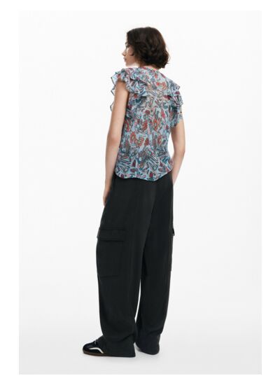 Conçue pour allier confort et style, cette blouse Desigual se distingue par ses détails soignés qui dynamisent votre silhouette. Son imprimé floral apporte une touche de nature et de douceur, tandis que les volants ajoutent du mouvement et une allure sophistiquée, idéale pour vos journées ensoleillées ou vos sorties décontractées.