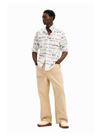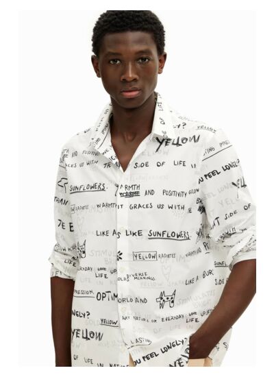 Lavage en machine à froid à l’envers, séparément, pour préserver les couleurs et la qualité de l’imprimé. Chemise à manches longues avec fermeture à boutons, imprimé lettrage, marque Desigual.