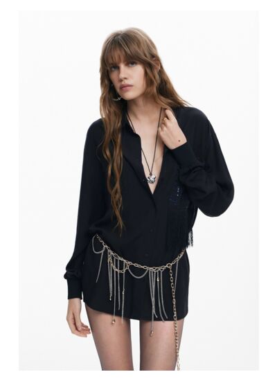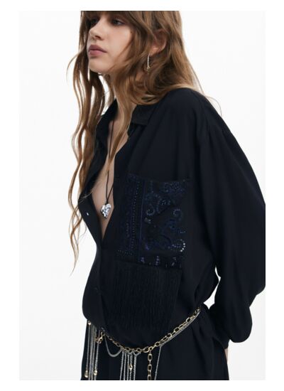 Affirmez votre style avec cette chemise à manches longues signée Desigual, où chaque détail raconte une histoire unique. Le jeu subtil de franges et l’imprimé original sur la poche apportent une touche audacieuse à votre tenue.
