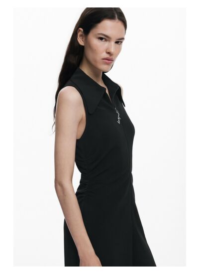 Profitez d’un vêtement polyvalent qui valorise votre morphologie tout en facilitant l’habillage grâce à sa fermeture éclair frontale. Les fronces latérales affinent la taille et ajoutent du mouvement, tandis que le col de chemise structuré équilibre parfaitement le look.
