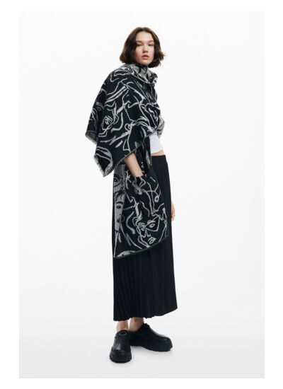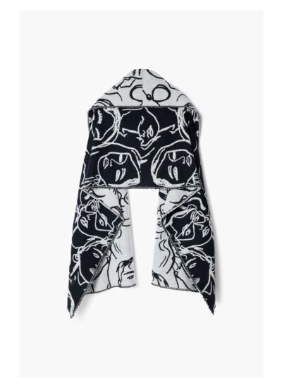 Sublimez votre allure avec cette grande écharpe rectangulaire signée Desigual, alliant douceur et audace graphique. Son imprimé de silhouettes féminines contrastées sur un fond bicolore apporte une touche d’originalité à toutes vos tenues.