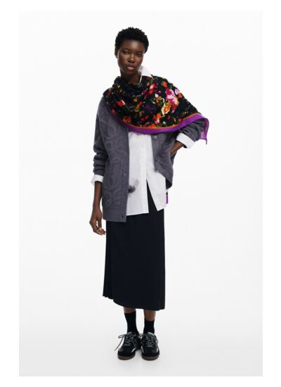 Sublimez votre tenue avec ce foulard rectangulaire à imprimé floral, une touche de fraîcheur et d’élégance signée Desigual. Son design unique apporte une note féminine et dynamique à toutes vos tenues.