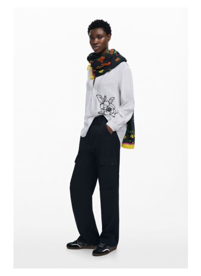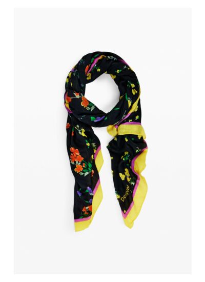 Apportez une touche de fraîcheur à votre tenue avec ce foulard rectangulaire signé Desigual, orné d’un délicat imprimé de petites fleurs. Un accessoire qui allie élégance et originalité pour sublimer chaque look.