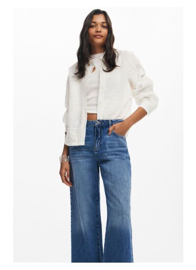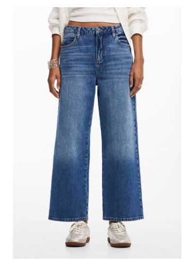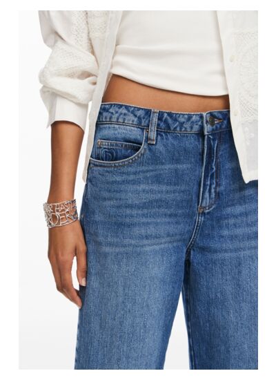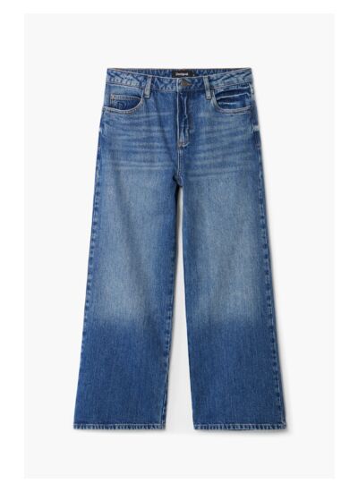 Jean culotte en denim, taille haute, fermeture à bouton et zip. Lavage en machine à l’eau froide recommandé pour préserver la qualité du tissu et la couleur. Catégorie : Denim Long Trouser. Marque : Desigual.