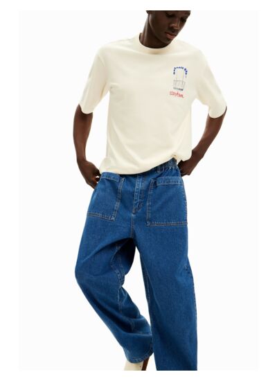 Conçu pour accompagner vos journées actives, ce jeans Desigual se distingue par sa taille élastique qui assure un maintien parfait sans contrainte. Les grandes poches avant et arrière ajoutent une touche pratique et stylée, idéales pour garder vos essentiels à portée de main. L’effet denim usé apporte une allure vintage et tendance, facile à associer avec vos pièces favorites.