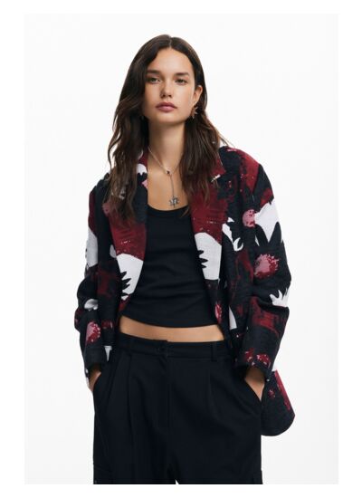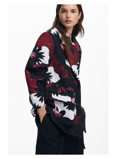 Manteau imprimé de fleurs, fermeture à bouton, conçu par Christian Lacroix pour Desigual. Ne pas laver. Catégorie : OVERCOAT.
