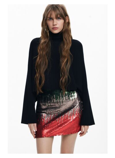 Faites briller chaque instant avec cette mini-jupe à sequins multicolores signée Desigual, conçue pour capturer tous les regards. Son design audacieux et sa fermeture éclair visible ajoutent une touche moderne à votre allure festive.