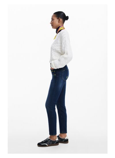 Affirmez votre style avec ce pantalon long en denim signé Desigual, sublimé par un délicat détail floral à la taille. Une pièce qui allie audace et féminité pour un look unique au quotidien.