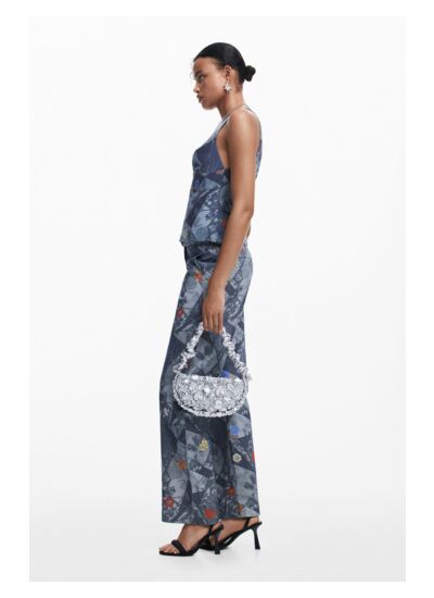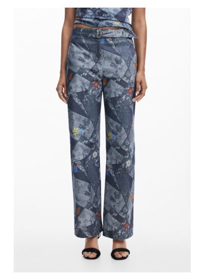 Affirmez votre style avec ce pantalon long à coupe droite, où le patchwork audacieux rencontre des détails floraux délicats pour un look unique et contemporain. Une pièce qui transforme chaque tenue en une déclaration mode.