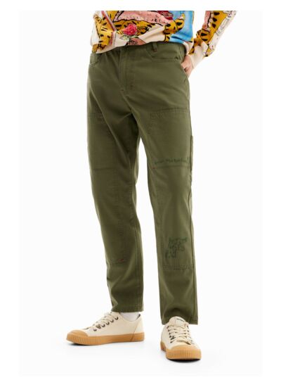 Adoptez un style urbain et fonctionnel avec ce pantalon long vert kaki, pensé pour l’homme moderne. Alliant praticité et design, il s’impose comme un incontournable de la nouvelle collection Homme SS24 Desigual.
