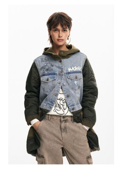 Alliez style urbain et fonctionnalité avec cette parka en tissu hybride denim, conçue pour affirmer votre personnalité au quotidien. La broderie iconique de Mickey Mouse apporte une touche ludique et unique à votre look.