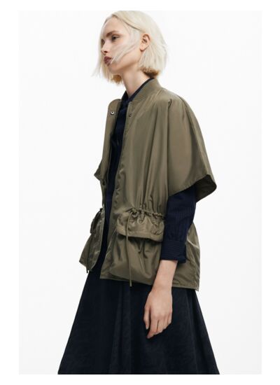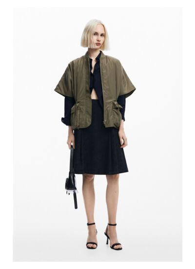 Lavage en machine à l’eau froide, cycle délicat. Poncho en nylon avec ceinture ajustable. Marque : Desigual.