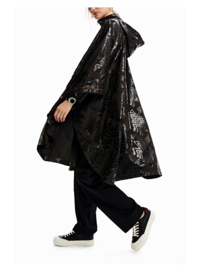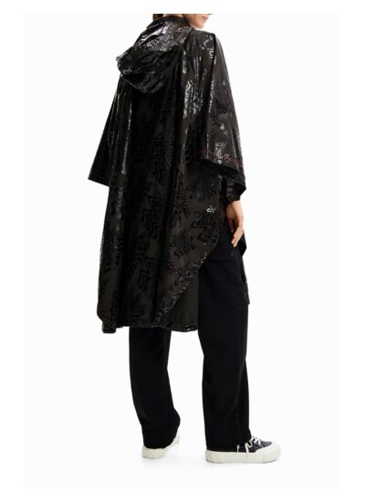 Imperméable oversize de style poncho avec capuche, doté de poches latérales, ceinture réglable à la taille, surpiqûres contrastantes et imprimé logos effet satiné. Entretien conseillé : lavage à la main.