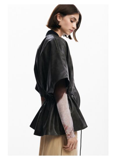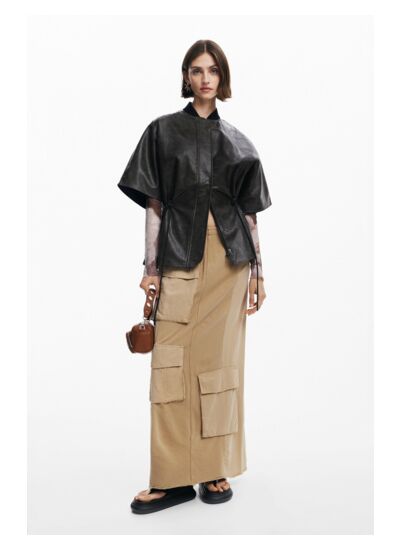 Conçu dans un matériau effet cuir, ce poncho ne nécessite pas de lavage. Sa taille ajustable se règle facilement pour un ajustement personnalisé. Marque : Desigual.