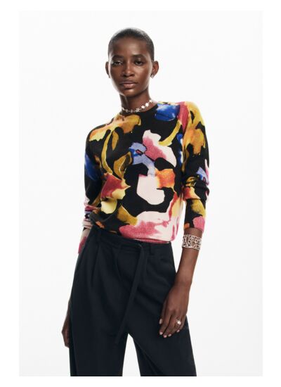 Laissez-vous séduire par ce pull en maille fine signé Desigual, où l’élégance rencontre une touche artistique audacieuse. Son imprimé de grandes fleurs apporte une fraîcheur unique à votre garde-robe.