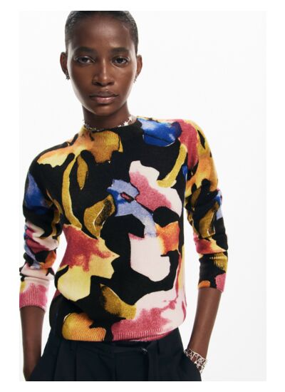 Confectionné dans une maille légère, ce pull à manches longues épouse délicatement la silhouette tout en offrant un confort optimal. Son design floral arty réinvente le classique du pull fin, parfait pour dynamiser vos looks de saison avec originalité et style.
