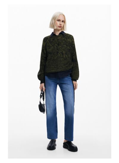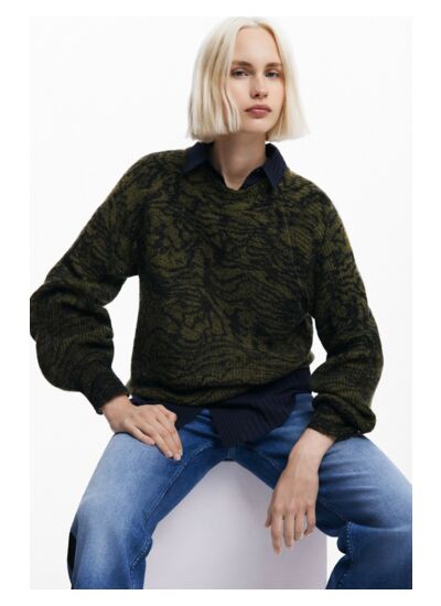 Réponse : Ce pull est proposé uniquement avec l’imprimé Arty caractéristique de la collection.