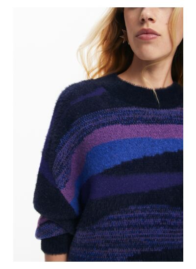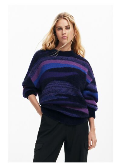 Adoptez l’audace d’un style unique avec ce pull en maille signé Desigual, où l’art rencontre la mode. Son imprimé Arty de lignes irrégulières dynamise votre silhouette tout en apportant une touche contemporaine à votre garde-robe.