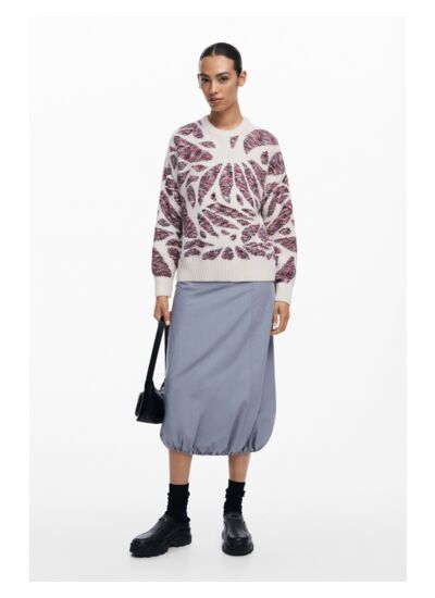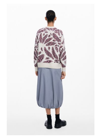 Confectionné dans une maille épaisse, ce pull offre une silhouette structurée grâce à son col rond et ses poignets côtelés qui maintiennent parfaitement la forme. Son imprimé graphique apporte une touche artistique à un basique revisité, idéal pour affirmer votre style en toute saison. Facile à associer, il s’adapte aussi bien à un jean qu’à une jupe pour un look casual chic.