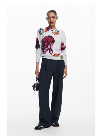 Maille fine, manches longues, col rond classique, imprimé floral exclusif par M. Christian Lacroix. Lavage à la main conseillé pour préserver la qualité du tissu et la vivacité des couleurs. Disponible dans la catégorie Thick Gauge Pullover, marque Desigual.