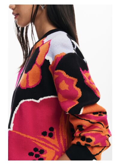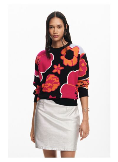 Lavage à la main recommandé pour préserver la finesse de la maille et l’éclat des couleurs. Pull à col rond, maille fine, imprimé floral de grandes dimensions. Marque : Desigual. Catégorie : Thin Gauge Pullover.