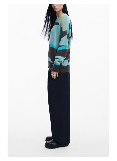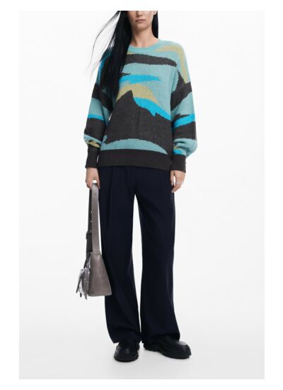 Plongez dans un univers de douceur et d’originalité avec ce pull en maille à manches longues signé Desigual. Son motif de paysage unique apporte une touche artistique à votre garde-robe hivernale.