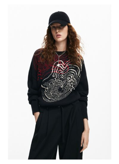 Conçu par Desigual, ce pull à manches longues et col rond se distingue par sa maille épaisse qui apporte chaleur et structure. L’imprimé de vagues, signature de Christian Lacroix, insuffle un esprit graphique et moderne à votre tenue, idéal pour un look casual-chic. Sa coupe pensée pour s’adapter à toutes les silhouettes garantit aisance et style sans compromis.