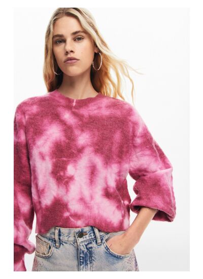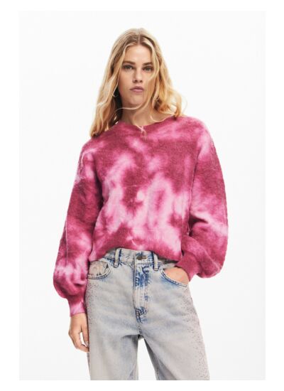 Affichez une allure unique avec ce pull en maille à manches longues, sublimé par un motif tie-dye audacieux et un col rond classique. Une pièce qui allie confort et style pour dynamiser votre garde-robe.