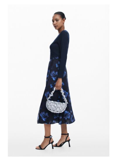 Affichez une élégance naturelle avec cette robe midi qui allie simplicité et originalité. Sa jupe imprimée de fleurs apporte une touche fraîche et féminine à chaque mouvement.