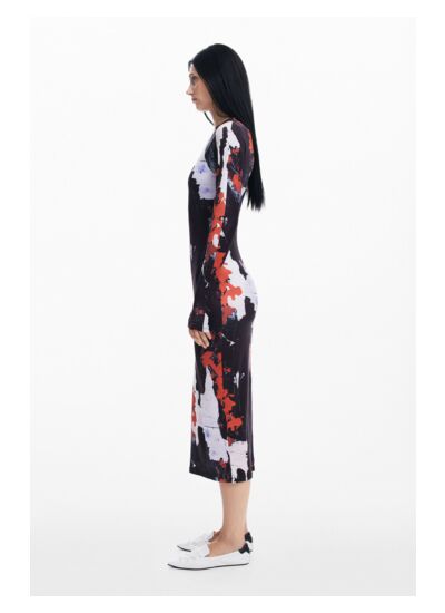 Affirmez votre style avec cette robe midi slim à manches longues, signée Desigual et conçue par Maitrepierre. Un imprimé unique qui transforme chaque mouvement en une déclaration de caractère.