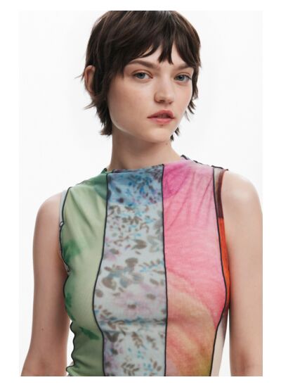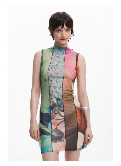 Fabriquée par Desigual, cette robe se lave en machine à froid à l’envers, sur un cycle très délicat, afin de préserver la finesse du tulle et la qualité des coutures.