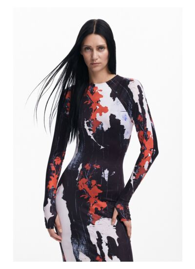 Affirmez votre style avec cette robe midi slim à manches longues, signée Desigual et conçue par Maitrepierre. Un imprimé unique qui transforme chaque mouvement en une déclaration de caractère.